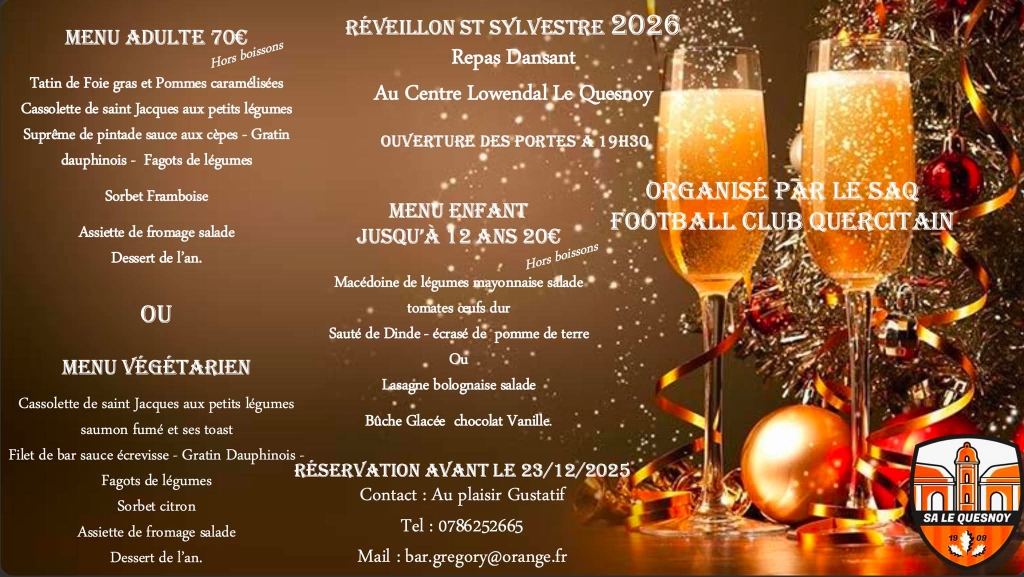 Préparez- vous pour une soirée inoubliable organiser  par  le club de foot de  le Quesnoy